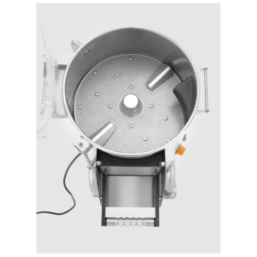 Volume van 28 liter. Capaciteit van 18 kg aardappelen per lading. Kan 240 tot 360 kg per uur schillen. Gewicht: 32,4 kg.