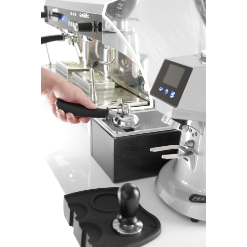 Frame gemaakt van donker hout, met een GN 1/4 afklopbak van roestvast staal. Verwijderbare klopstang voorzien van siliconen hoes.