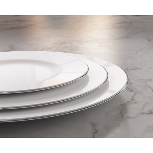 Met een diameter van 22 cm is dit ontbijtbord perfect voor het serveren van broodjes, salades of fruit. Het subtiele platina-accent voegt een verfijnde esthetiek toe, terwijl het duurzame porselein bestand is tegen dagelijks gebruik. Een ideale keuze voor hotels en restaurants die luxe willen uitstralen.