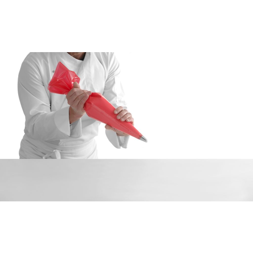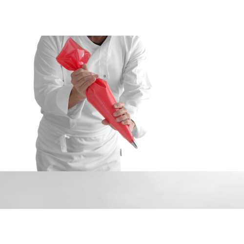 Gemaakt van TPE, BPA-vrij. Voor eenmalig gebruik. Geschikt voor warme en koude ingrediënten, tot 100°C. Voldoet aan de HACCP-normen. Foliedikte: 115 micron. Rol van 70 stuks.
