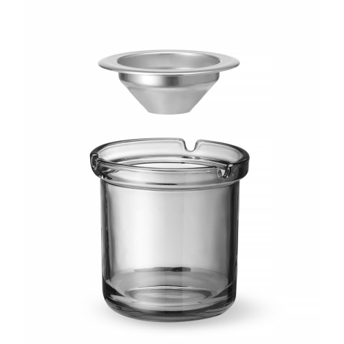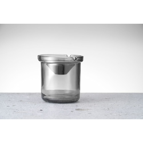 2 afzonderlijke elementen: – behuizing van glas, bestand tegen hoge temperaturen, – trechter gemaakt van roestvast staal. Met 3 sigarettensleuven. Trechter geleid as in de asbak en dient als deksel: bij gebruik binnen – vermindert rookgeuren, bij gebruik buiten – beschermt tegen opblazend as.