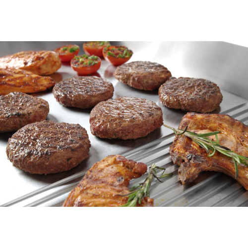 2 onafhankelijke verhittingszones, 2 verwarmingsindicatielampen. Grill oppervlak 688x410 mm, links 462 mm glad en rechts 226 mm geribd.