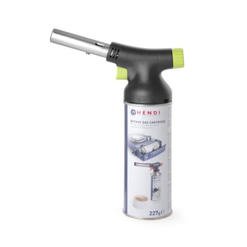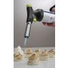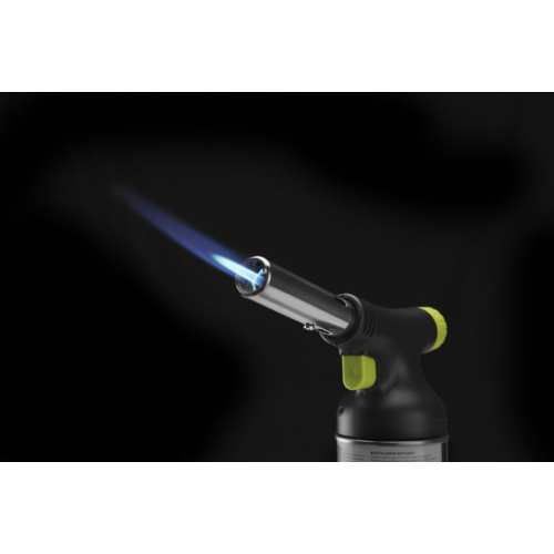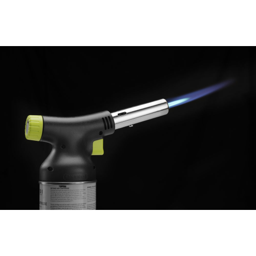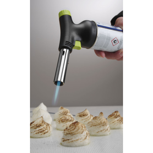Ontworpen met chef-koks in gedachten door Robert Bronwasser. Deze koksbrander is een genot om te gebruiken dankzij het stijlvolle matzwarte ontwerp met groene accenten en de ergonomische grip. De koksbrander kan eenvoudig en stevig aan het gasbusje worden bevestigd (het is mogelijk om deze te vervangen nadat het gas op is) en bedekt de hele bovenkant van de bus. De piëzo-ontsteking maakt ontsteken gemakkelijk, de grote gasknop maakt het eenvoudig om de vlamgrootte en -intensiteit aan te passen. De koksbrander kan onder elke hoek werken, zelfs ondersteboven, dankzij het verbeterde ontwerp van de brander dat flakkeren voorkomt. Nauwkeurige vlamcontrole, tot een vlamlengte van 150 mm. Inbegrepen in de set: koksbrander en gasbus. Gasbussen kunnen afzonderlijk worden gekocht, code: 199039.