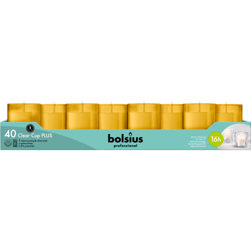 Bolsius Professional Clear cups 16 branduren Amber tray 40 stuks