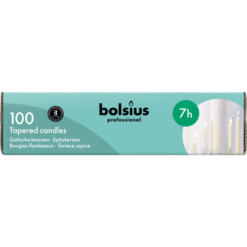 Met de Bolsius Professional kroonkaarsen creëer je makkelijk een gezellige en romantische sfeer. De kaarsen zijn gemaakt voor 7 branduren zodat jij en de gasten er de hele avond van kunnen genieten: van het aperitief tot en met de borrel na het eten. De kaarsen kunnen uiteraard ook zonder probleem op een ander moment opnieuw worden aangestoken. Dankzij de premium kwaliteit, mooie en rustige vlam, gelijkmatige verbranding, kies je met Bolsius Professional tafelkaarsen voor het beste resultaat. De ribvoet aan de kaarrs zorgt dat deze altijd perfect in de kandelaar past.