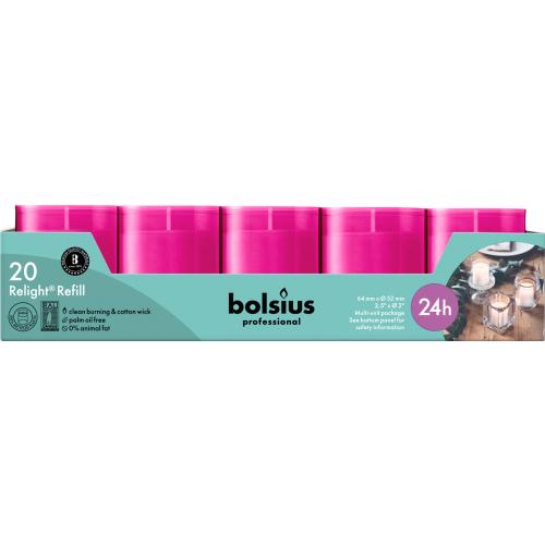 Bolsius Professional ReLight navullingen 24 branduren Fuchsia tray 20 stuks
