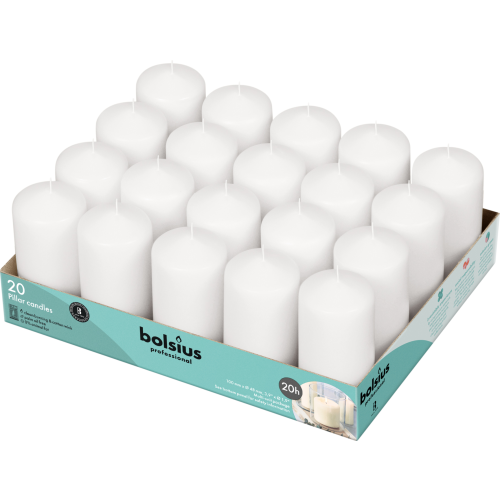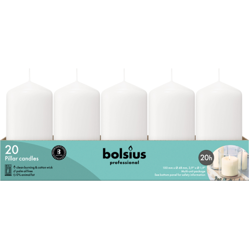Bolsius Professional Stompkaarsen 10/5 cm 20 branduren Wit tray 20 stuks