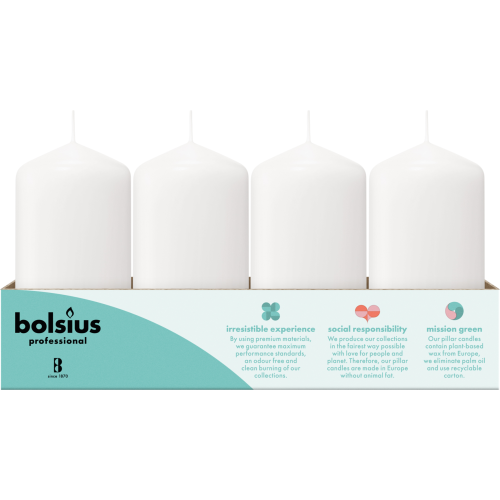 Met de Bolsius Professional stompkaarsen creëer je makkelijk een gezellige en romantische sfeer. De kaarsen zijn veilig, geurloos, makkelijk in gebruik en gemaakt voor 20 branduren zodat je er verschillende dagen van kan genieten: van het aperitief tot en met de borrel na het eten. De kaarsen kunnen uiteraard ook zonder probleem op een ander moment opnieuw worden aangestoken. Dankzij de premium kwaliteit, mooie en rustige vlam, gelijkmatige verbranding, kies je met Bolsius Professional stompkaarsen voor het beste resultaat.