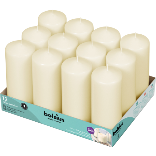 Bolsius Professional Stompkaarsen 17/6 cm 49 branduren Ivoor tray 12 stuks