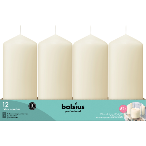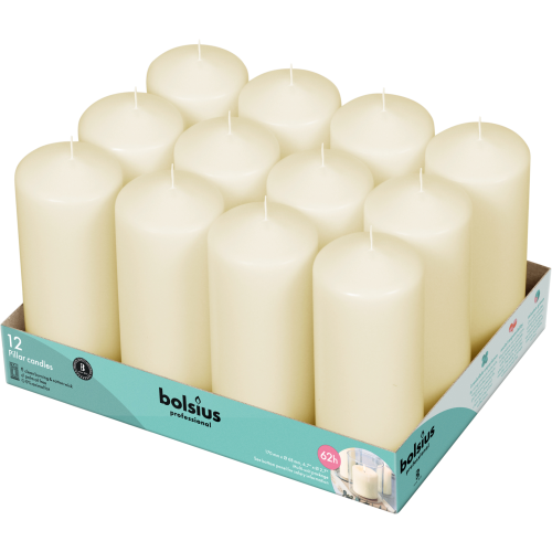 Bolsius Professional Stompkaarsen 17/7 cm 62 branduren Ivoor tray 12 stuks