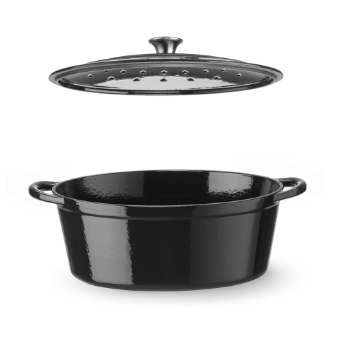 Braadpan geëmailleerd gietijzer, HENDI, 6,88L, Zwart, 405x255x(H)134mm