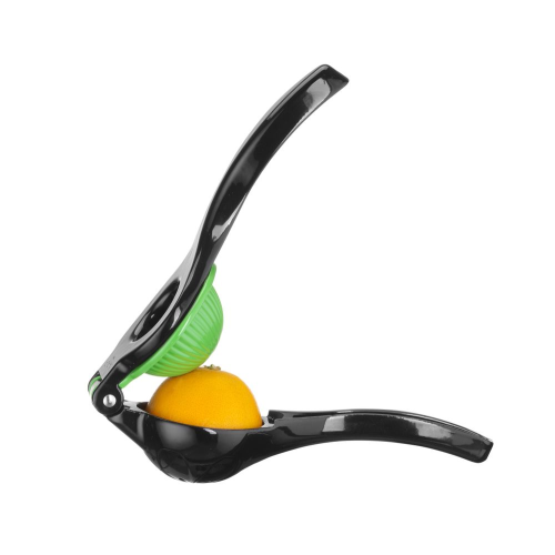 Gemaakt van gepoedercoate dikke aluminiumlegering. Dubbele perskommen (voor kleinere en grotere citrusvruchten): ⌀55 mm en ⌀70 mm. Niet vaatwasmachinebestendig.