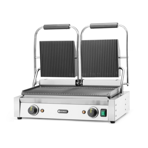 Contactgrill - dubbele versie, HENDI, boven en onder geribd, 230V/3600W, 570x375x(H)216mm