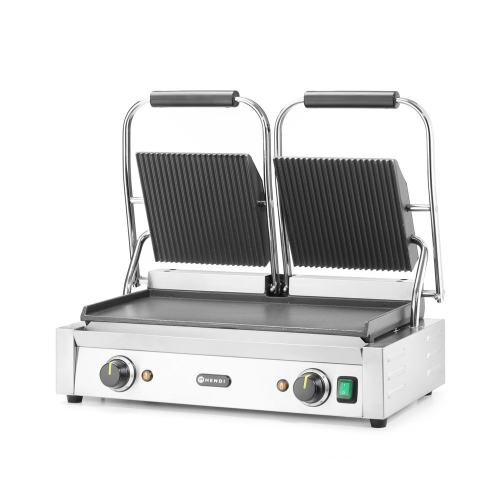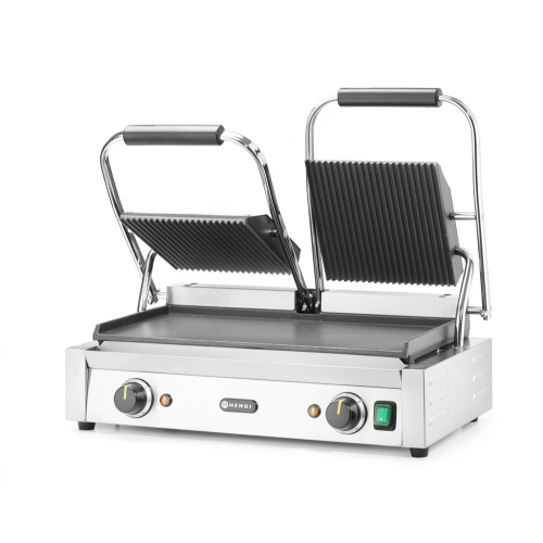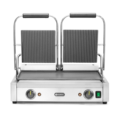 Contactgrill - dubbele versie, HENDI, boven geribd, onder glad, 230V/3600W, 570x375x(H)216mm