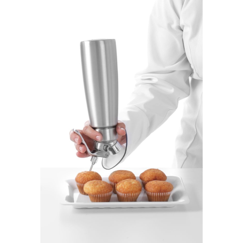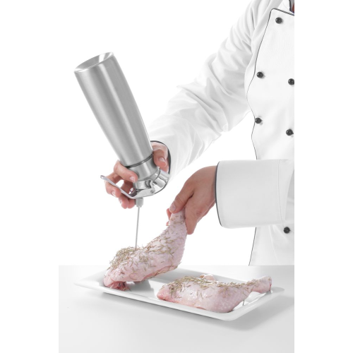 Ideaal voor decoratie, vulling, injecties en marineren. Set van 4 roestvaststalen mondjes: - 1 lange injector ø3 mm - 1 lange injector ø5 mm - 1 korte injector ø3 mm - 1 korte injector ø5 mm. Alleen te gebruiken in combinatie met HENDI Profi Line slagroom apparaten.