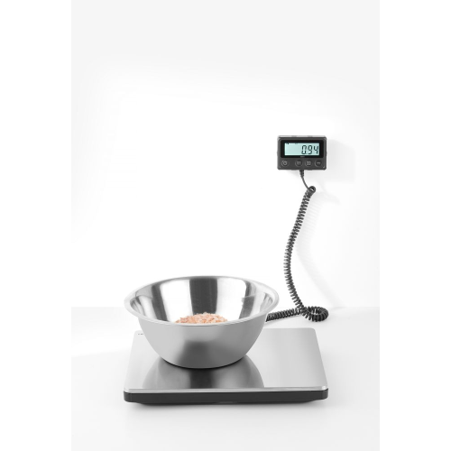 Roestvaststalen weegschaal. Nauwkeurige meting dankzij geavanceerde technologie - van 200 g tot 200 kg (440 lb). Nauwkeurigheid: 10-50 g Weergave in kg of lb. Tarrafunctie. Bediening via apart digitaal display met 4 knoppen. Energiebesparend LCD-display met batterijlaadindicator. Vingerafdrukbestendige coating. Voeding: 2 AAA-batterijen (inbegrepen). USB-C-poort - kabel inbegrepen in de set. OPMERKING: Voedingsadapter niet inbegrepen. Nauwkeurigheid: - tot 25 kg: ±40 g. - 25 kg-50 kg: ±100 g. - 50 kg-100 kg: ±200 g. - 100 kg-150 kg: ±300 g. - 150 kg-200 kg: ±400 g.