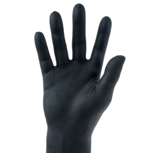 Poedervrij wegwerp handschoen zwart van nitril. Goede punctie- en scheurbestendigheid, het manchet is voorzien van een rolrand. Deze handschoen is leverbaar in 8 verschillende kleuren, ideaal voor toepassingen binnen kleurcoderingssystemen. Geschikt voor direct contact en verwerking van voedingsmiddelen.