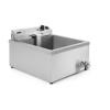 Ideaal voor het frituren van donuts, beignets, oliebollen en ander gefrituurd deeggebak. Volledig gemaakt van roestvast staal, wordt geleverd met twee bakroosters (354x383 mm) met een koelhandgreep, een verwarmingsrooster en een deksel dat ook als lekbak kan dienen. Eenvoudig in gebruik en schoon, geschikt voor intensief gebruik en grote hoeveelheden. Uitgerust met een grote gelaste olietank (400x400x(H)160 mm) met een max. capaciteit van 12 liter. Tank uitgerust met aftapkraan en min/max oliepeilmarkeringen, heeft een ‘koude zone’ om de gebruikstijd van olie te verbeteren. Verwisselbaar verwarmingselement met uitschakelfunctie bij verwijderen en bescherming tegen oververhitting. De temperatuur kan worden ingesteld van 50 ° tot 190 ° C. Verwarmingsindicatielampje om aan te geven of het verwarmingselement werkt. Met rubberen antislipvoetjes.