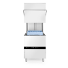 Uiterst eenvoudig te gebruiken, te reinigen en te onderhouden Ideaal voor het wassen van borden, bestek, glaswerk, bekers, trays en GN 1/1 containers Elektronische regeling Met dispensers voor wasmiddel + glansmiddel en afvoerpomp Maximale hoogte borden 400 mm Maximale hoogte van glazen 395 mm Raak het elektronische bedieningspaneel aan AISI 304 roestvaststalen behuizing Roestvaststalen boven- en onderarmen voor wassen en spoelen Het optillen van de kap wordt vergemakkelijkt door ingebouwde veren Water temperatuur wassen 60°C Water temperatuur spoelen 85°C Capaciteit en uitgangsvermogen van de boiler 13,5 l / 7,5 kW Tankinhoud en vermogen 68L / 6,0 kW Reinigingspomp vermogen 1,5 kM Elektronische thermometers voor de boiler en het bad afzonderlijk Veiligheidsthermostaat voor boiler/bad tot 105°C / 99°C Waterdichtheid index van de pomp: IP 44 Hoekinstallatie van vaatwasser mogelijk Wateraansluiting: 3⁄4" Gewicht: 131,5 kg Verstelbare roestvaststalen poten van 100 tot 150 mm