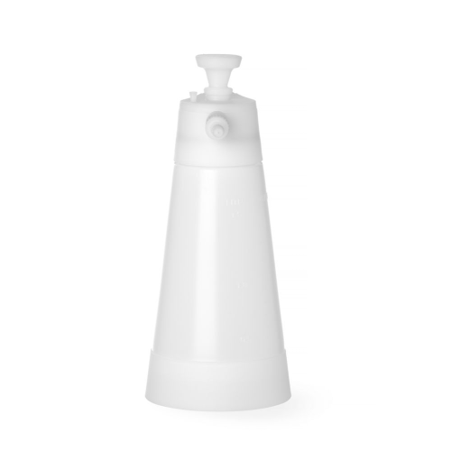 Ideaal voor: het smeren van bakvormen, het aanbrengen van voedseladditieven en aroma's, het bevochtigen van brooddeeg. Een perfect gelijkmatige laag van een product spuiten. Het drukspuittoestel werkt in de keuken zonder zware apparaten te hoeven gebruiken. Gemaakt van zeer duurzaam polymeer – HDPE. Brede bodem van de fles, voor stabiliteit. Siliconenafdichtingen die niet gesmeerd hoeven te worden. Een verstelbaar mondstuk dat zijn positie in 360° kan veranderen. De aanzuigleiding heeft een filter om verstopping te voorkomen. Een meetschaal voor eenvoudige regeling van het vloeistofniveau. Een ontluchter die beschermt tegen het vacuümzuigen van het deksel. Druk: 2,2 bar. Gewicht: 0,59 kg.