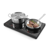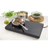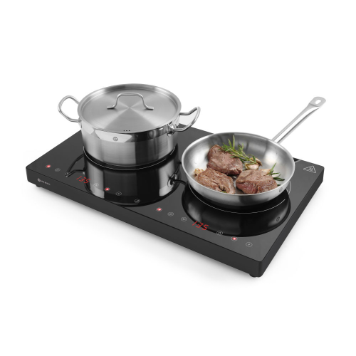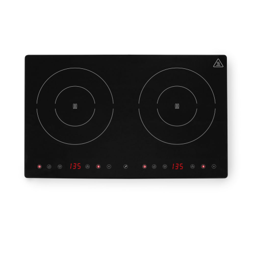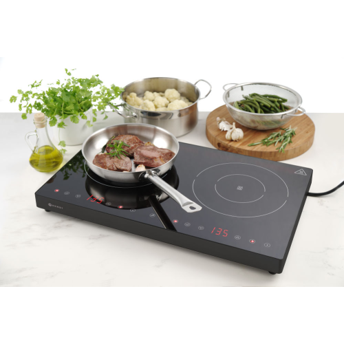 Aanraakgevoelige bediening, vermogen of temperatuur instelbaar in 9 stappen Met boost modus welke tijdelijk een deel van het vermogen van de rechter kookzone naar de linker omleidt Linker kookzone geeft 1800W, of 2000W bij gebruik boost functie Rechter kookzone geeft 1700W Temperatuur bereik: 35-240˚C Geschikt voor pannen met een bodemmaat van ø120 mm tot ø220 mm Met timer functie van 0-180 minuten Uitgerust met elektronische oververhittingsbescherming Toegestane maximale belasting van de kookplaat: 2x15 kg