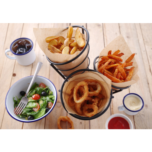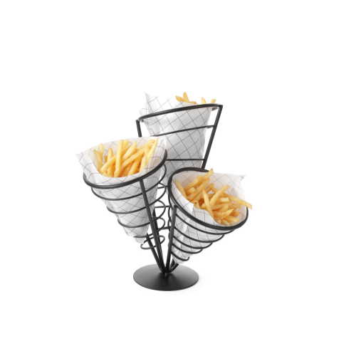 Zwart draadframe, biedt ruimte aan 3 frietzakken.
