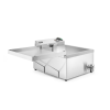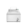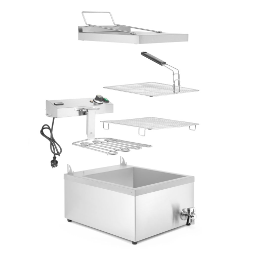 Gelaste olietank, voorzien van een aftapkraan aan de voorzijde. Uitneembaar verwarmingselement, met een extra veiligheidsvoorziening die het volledige apparaat uitschakelt wanneer dit wordt verwijderd. Oververhittingsbeveiliging met resetfunctie. Koude zone systeem voorkomt aanbranden. Olietank: 400x400x(H)160 mm. Temperatuurregeling: 50°-190°C. Max. capaciteit: 12 L. Rubberen, antislip voetjes. Ideaal voor het bakken van donuts en een verscheidenheid aan zoete en hartige snacks.