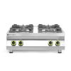 Gemaakt van roestvast staal. Uitgerust met 4 branders: - 2 branders van 6,0 kW - 2 branders van 3,5 kW. Branders zijn uitgerust met thermokoppel. Geschikt voor pannen van ø 120 tot 300 mm. Pannendragers en branders gemaakt van gietijzer. In hoogte verstelbare poten voorzien van antislippoten. Geschikt voor aardgas, conversieset voor LPG inbegrepen. Opmerking: Geen waakvlam of ontsteking, moet worden aangestoken met lucifers of aansteker. Gewicht: 35 kg.