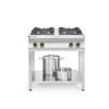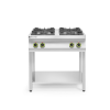 Gemaakt van roestvast staal. Uitgerust met 4 branders: - 2 branders van 6,0 kW - 2 branders van 3,5 kW Branders zijn voorzien van een thermokoppel. Geschikt voor pannen van ø 120 tot 300 mm. Pannendragers en branders gemaakt van gietijzer. In hoogte verstelbare poten voorzien van antislippoten. Geschikt voor aardgas, conversieset voor LPG inbegrepen. Opmerking: Geen waakvlam of ontsteking, moet worden aangestoken met lucifers of aansteker. Gewicht: 46 kg.