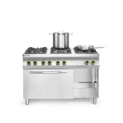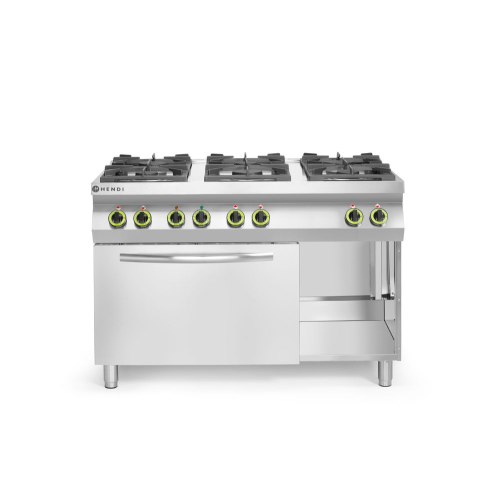 Gasfornuis Kitchen Line 6-pits met convectieoven GN 1/1, HENDI, Kitchen Line, 230V/3000W, 28,5kW, 1200x722x(H)900mm