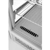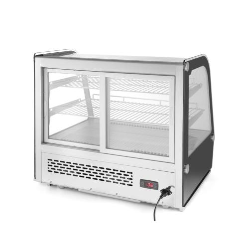 Behuizing van roestvast staal, voorzien van gebogen dubbelglas voorzijde en zijpanelen van glas. Toegankelijk via twee glazen schuifdeuren aan de achterzijde. Geforceerde luchtkoeling met automatische ontdooiing, compressor geplaatst onder de koelruimte. Inclusief 2 verchroomde schappen. Heldere LED-verlichting in het plafond. Digitale temperatuurregelaar en display. Temperatuurbereik: 0 tot 6°C. Klimaatklasse: 4 Koelmiddel: R600a. Energielabel: B.