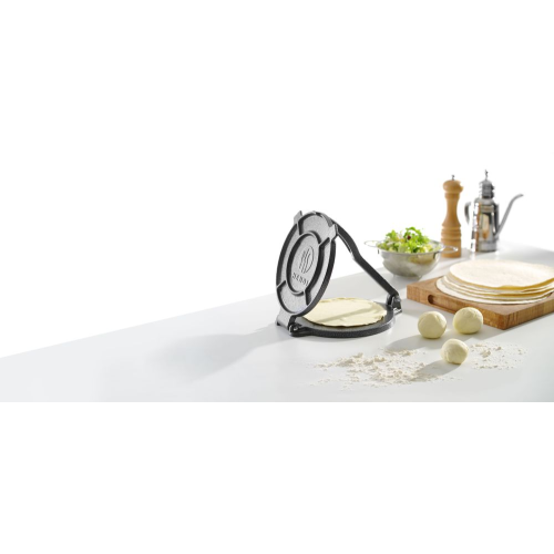 Gemaakt van gietijzer. Afgewerkt met epoxy poedercoating Voor tortilla's met een diameter tot 200 mm. Niet vaatwasmachinebestendig.