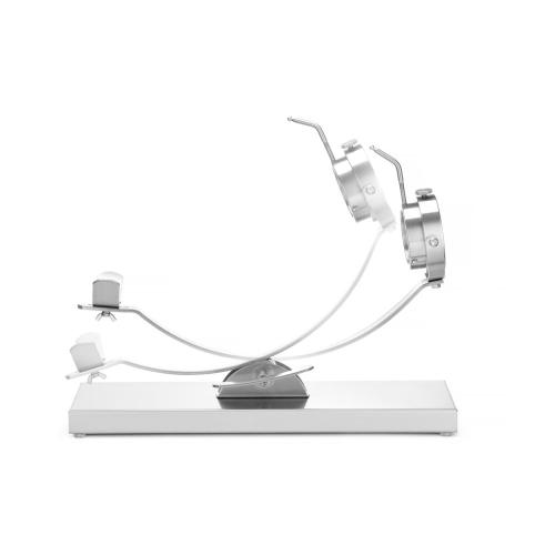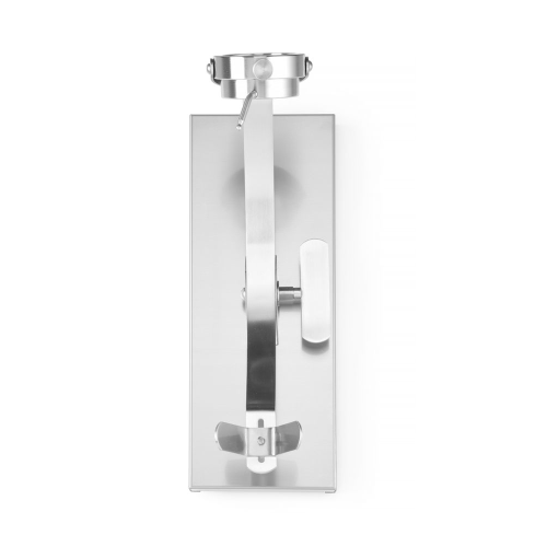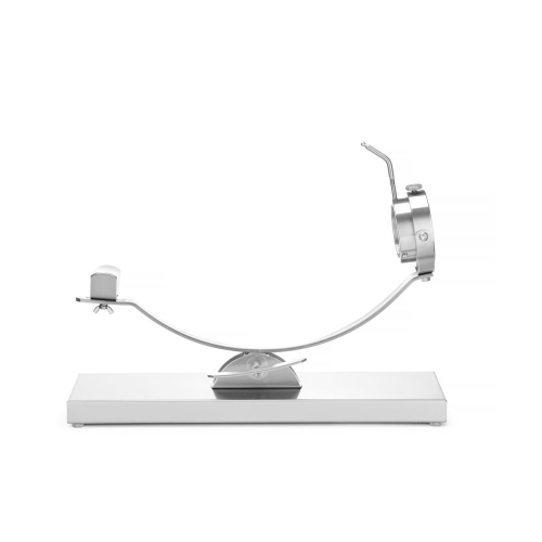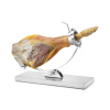 Standaard en basis gemaakt van roestvast staal met een satijnen afwerking. De ham wordt op zijn plaats vastgezet met één schroef in de ring (ø80 mm). Dankzij de draaibare ring is de ham gemakkelijk te draaien voor optimale snijtoegang. De klem heeft een kantelsysteem. Afstand tussen de montageschroeven: ca. 480 mm. Afmetingen van de basis: 570x215x(H)35 mm. Wordt gedemonteerd geleverd (imbussleutel inbegrepen in de set).