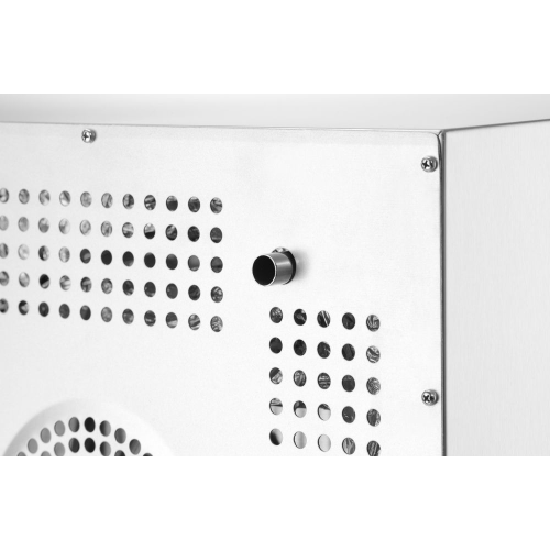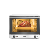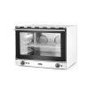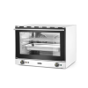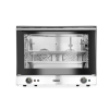 Behuizing van roestvast staal. Verwijderbare cool-touch deur met dubbel glas. Gedeeltelijk geëmailleerde kamer met binnenverlichting. Verwarming door middel van 2 verwarmingselementen en 2 ventilatoren. Temperatuur instelbaar van 50°C tot 300°C. Directe bevochtiging, handmatig bedienbaar met een knop. Watertoevoer aan de achterzijde, aan te sluiten op de waterleiding. Timer: 0-120 min. Geschikt voor 4x GN 1/1 trays. Afstand tussen de geleiders is 75 mm. Geleverd met GN 1/1 tray van 65 mm diep en GN 1/1 rooster.