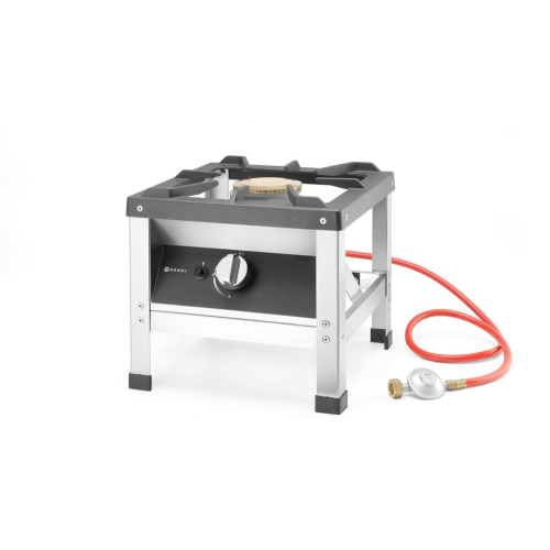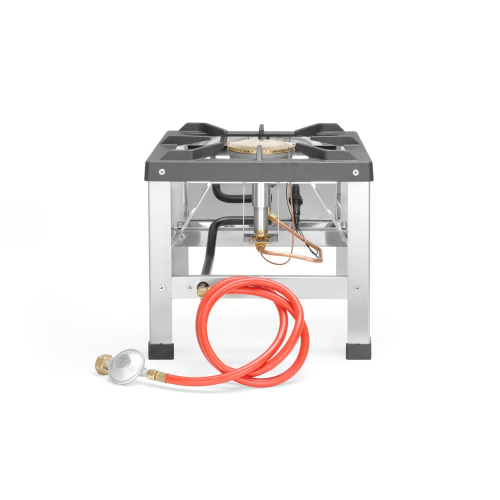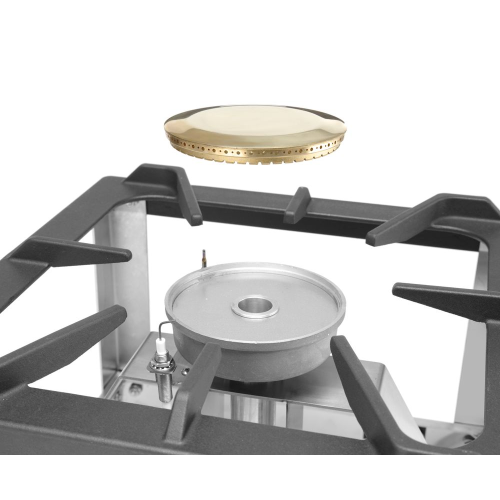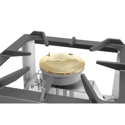 Model Kitchen Line - voor propaan- en butaangas. Volledig roestvaststalen frame. Uitgerust met thermokoppel en elektronische ontsteking. Voorzien van geëmailleerde pandrager. Wordt compleet geleverd met gasslang en drukregelaar.