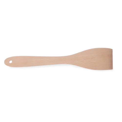 Voor professioneel gebruik in de gastronomie. Veelzijdig inzetbaar. Gemaakt van beukenhout. Plat handvat met ophangoog. Lengte: 300 mm. Set van 4 stuks. Let op: Niet vaatwasmachinebestendig.