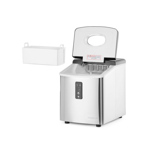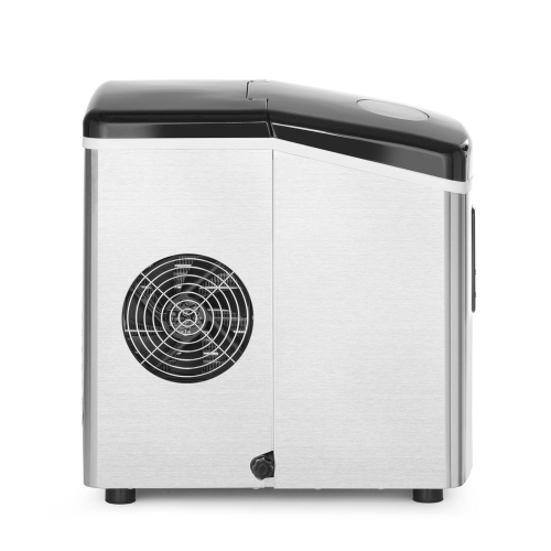 Behuizing gemaakt van roestvast staal. Deksel gemaakt van zwart ABS. Tafelmodel. Maakt kogelvormige ijsblokjes. Capaciteit 12 kg per 24 uur, buffervoorraad 3,2 kg - per cyclus 9 blokjes. Keuze uit 3 ijsblokjes maten, blokjes worden gevormd rond koelstaven. Slaat 100 ijsblokjes op. Geen vaste wateraansluiting.