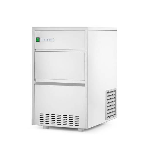 Behuizing gemaakt van roestvast staal. Maakt kogelvormige ijsblokjes. Voorzien van blauwe LED-verlichting. Kan tot 7 kg ijs opslaan. Inlaat- en afvoerslangen en een ijsschep worden meegeleverd.
