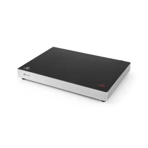 Unieke inductie warmhoudplaat die werkt door middel van een rechthoekige inductiespoel waardoor ook meerdere pannen erop geplaatst kunnen worden. Vermogen in 11 stappen regelbaar d.m.v. draaiknop. Temperatuur bereik: 40-100°C. Uitgerust met elektronische oververhittingsbescherming. Toegestane maximale belasting van de kookplaat: 15 kg.