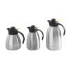 Dubbelwandig roestvast staal. Met gele drukdop. Kop en dop van polypropyleen.