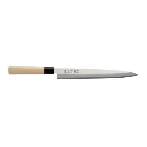 Snede aan één kant geslepen. Lang, dun lemmet, perfect voor het in één beweging fileren van kleine tot middelgrote vis en het snijden van visfilets voor sashimi en sushi.