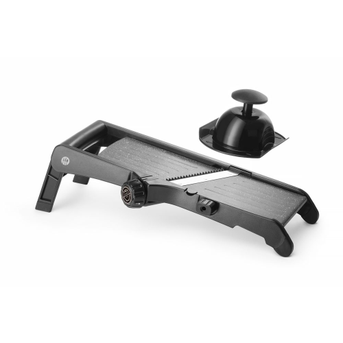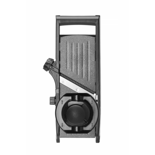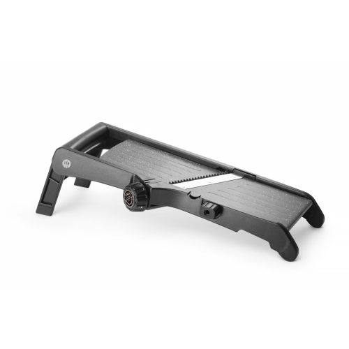 Stevige constructie, gemaakt van roestvast staal, ABS en polypropyleen. Oppervlak afgewerkt met een PTFE-coating met anti-aanbaklaag voor soepel snijden. Ultrascherpe hoofdmessen, schakel gemakkelijk tussen het gladde of kreukelmes. De snijdikte kan worden ingesteld tussen 0,5 tot 9 mm. Met geïntegreerde mesjes voor 4,5 mm julienne en 9 mm dikke frietjes. Mogelijkheid om de julienne-messen te verwijderen voor reiniging, ontgrendelpositie afgedrukt op de knop. Met intrekbare voet- en komuitsparing, kan vrijstaand worden gebruikt, op een kom worden geplaatst of zelfs in de hand. Komuitsparing en poten bekleed met antislip TPR (thermoplastisch rubber), zorgt voor stabiliteit tijdens gebruik. Wordt geleverd met een groentehouder om de vingers te beschermen tijdens het snijden, tevens met mesbeschermers voor veilige opslag.
