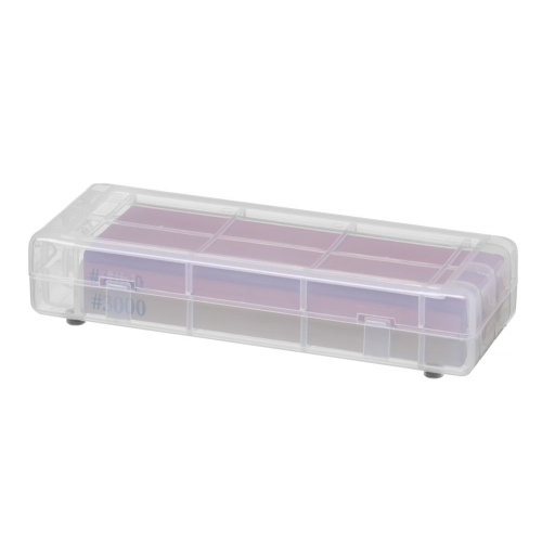De dubbelzijdige steen heeft 2 verschillende korrelgroottes: 220/1000 (820667). 1000/3000 (820674). Korrelgrootte - voor elk doel: 220: snijvlak aanzetten. 1000: snijvlak slijpen. 3000: polijsten en afwerken van het snijvlak. Bevochtig de steen vóór gebruik met water. De set bevat een plastic opbergdoos.