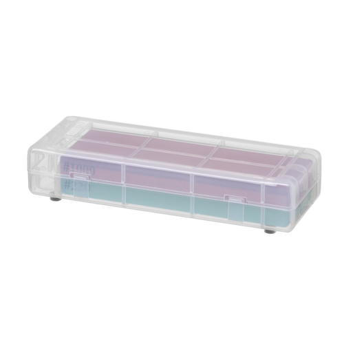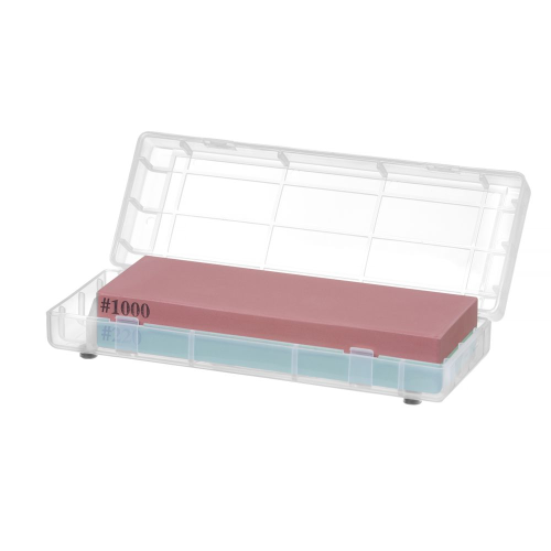 De dubbelzijdige steen heeft 2 verschillende korrelgroottes: 220/1000 (820667). 1000/3000 (820674). Korrelgrootte - voor elk doel: 220: snijvlak aanzetten. 1000: snijvlak slijpen. 3000: polijsten en afwerken van het snijvlak. Bevochtig de steen vóór gebruik met water. De set bevat een plastic opbergdoos.