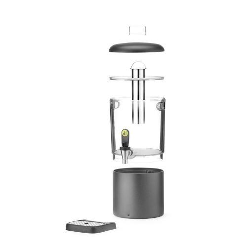 Behuizing gemaakt van polypropyleen. Drankencontainer gemaakt van ABS ontworpen om resten aan de onderkant te minimaliseren. Verwijderbare roestvast stalen koelbuis voor ijs houdt dranken gekoeld. Magnetische lekbak gemaakt van polypropyleen, met een geperforeerde roestvrijstalen inzet. Unieke non-drip kraan. Maximale cuphoogte: 120 mm. Etikethouder voor drankidentificatie. Door de transparante behuizing kan het vloeistofniveau eenvoudig worden gecontroleerd. Verkrijgbaar in 2 capaciteiten: 4 en 8 liter. Snelle montage en demontage voor eenvoudig hygiëneonderhoud. Verkrijgbaar in 3 kleuren die passen bij andere elementen van de UNIQ-collectie: zwart, wit en geel.