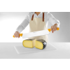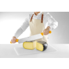Lang, stijf blad gemaakt van roestvast staal (gewalst blad). Ergonomische handgrepen van polypropyleen. Niet vaatwasmachinebestendig.