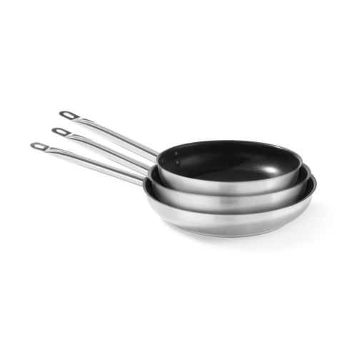 Teflon® Platinum Plus antiaanbaklaag. Lange, koelblijvende handgreep van roestvast staal. Handgreep met klinknagels bevestigd.