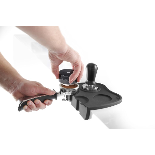Verdeler gemaakt van roestvast staal, voor alle portafilters met een diameter van 58 mm. Greep gemaakt van zwart aluminium. Met 3 richels aan de onderkant om gemalen koffie in een portafilter gelijkmatig te verdelen.