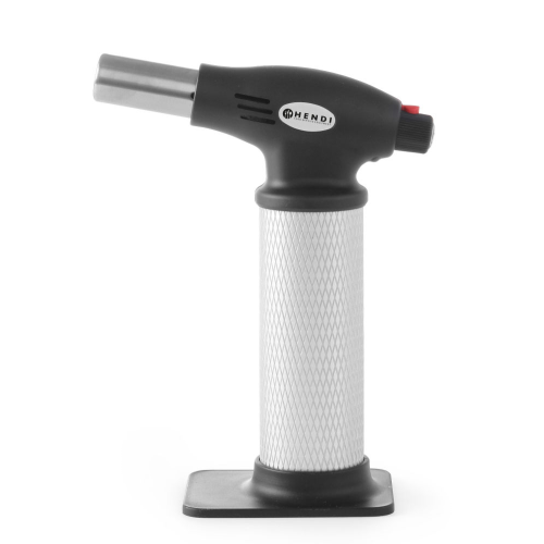 Gas, navulbaar - met automatische ontsteking. Brander wordt ongevuld geleverd. Compleet met standaard.