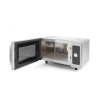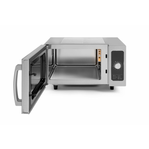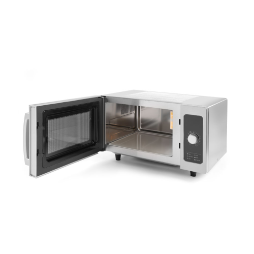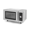 Behuizing en interieur gemaakt van roestvast staal, met keramische kamer vloer. Eenvoudig af te lezen bedieningspaneel. Eenvoudige bediening met één knop, insteltijd van 15 s tot 6 min. De roterende magnetronantenne onderin zorgt voor een gelijkmatige verdeling van de energie. Ingebouwd luchtfilter ter bescherming tegen vet en stof. Deur met venster voor het observeren van de voortgang in het verlichte interieur van de magnetron. Strakke vergrendeling; gemakkelijk openen - geen vergrendelingsmechanisme. Kamer interieur: – afmetingen 327x346x(H)200, inhoud 25 l. – makkelijk schoon te maken. – het breken van borden wordt voorkomen dankzij de afgeronde randen. – keramische bodem. Multifunctioneel gebruik: – ontdooien. – 6 voorgestelde tijdprogramma's voor het bereiden van geselecteerde gerechten/dranken. – het einde van de kookcyclus wordt aangegeven door een alarm. – 4 vermogensniveaus. Magnetronvermogen: 1000 W. Geschikt voor ronde (tot ø320 mm) en rechthoekige borden. Maximale insteltijd: 6 minuten. Voorzien van een kabel met een geaarde stekker. Gewicht: 15,1 kg.